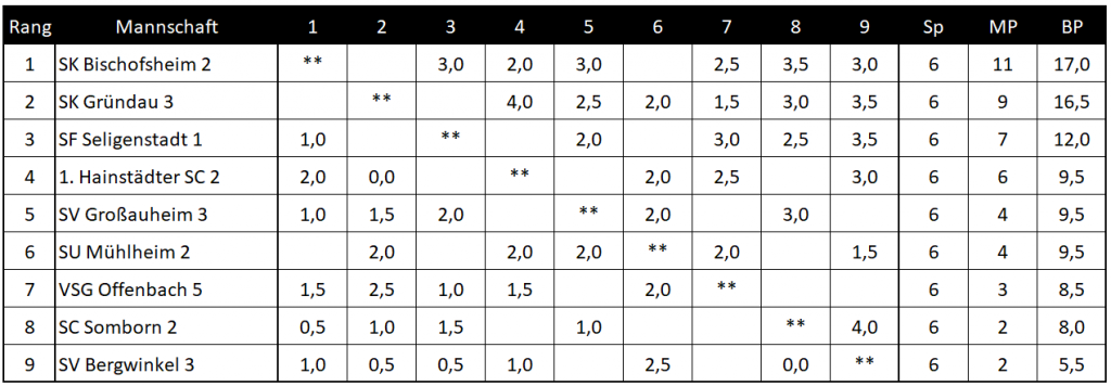 Tabelle Kreisoberliga Saison 2025/26