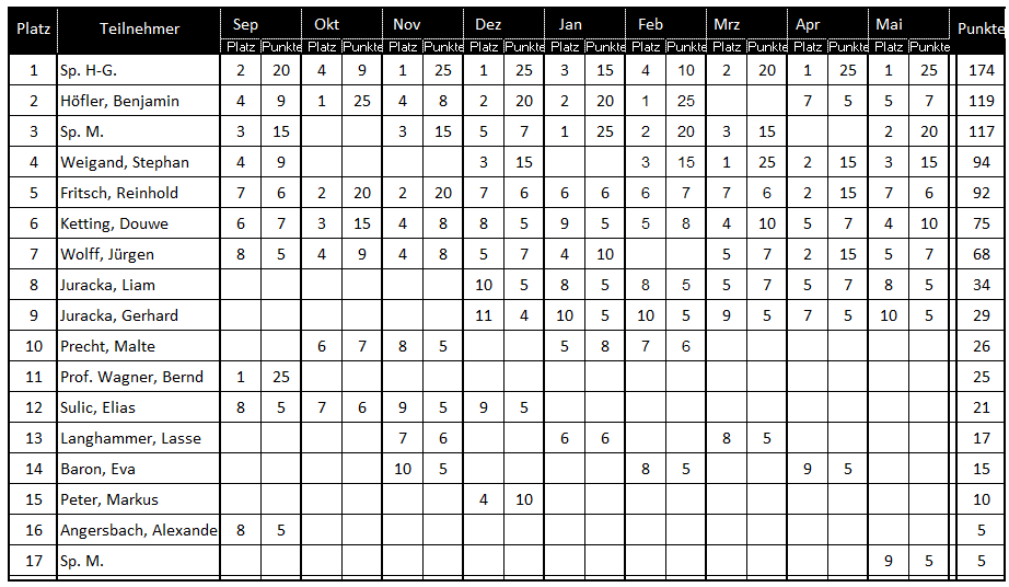 Es stehen 10 Rundentermine zur Verfügung. Termine siehe Vereinskalender.